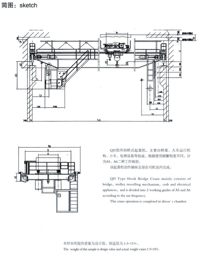 QD型5~100/20t吊鉤橋式起重機(jī)