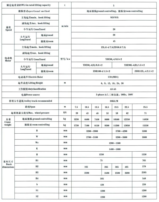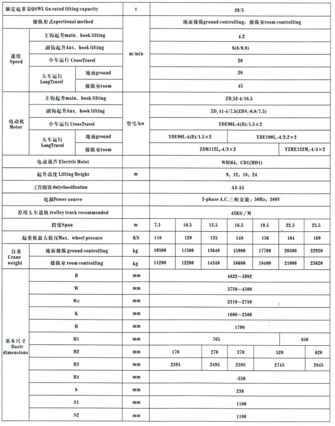 QD型5~100/20t吊鉤橋式起重機(jī)